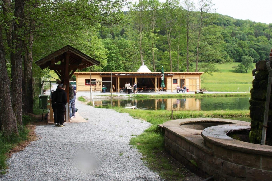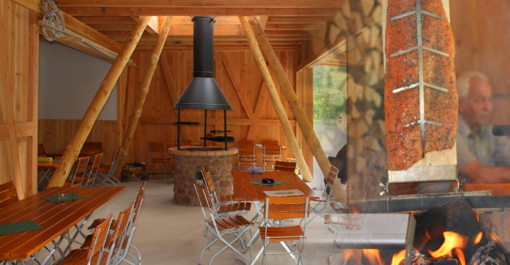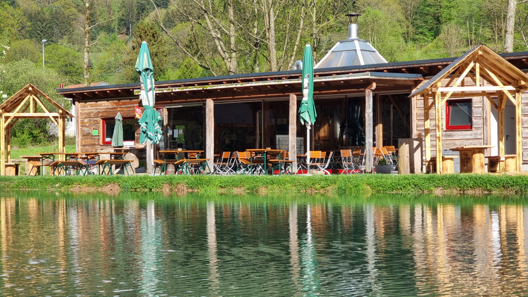 Besonderen Wert legen wir auf eine gepflegte Gastronomie. Egal ob Ihnen der Sinn nach feinem Fisch wie frisch geräucherter Forelle, Flammlachs (auch vom Grill – je nach Verfügbarkeit und ab 4 Personen) oder Backfisch steht oder sie Schnitzel, Burger oder unsere Spezialität, die Wildschweinbratwürste bevorzugen , unser Küchenpersonal wird alles daran setzen, sie zufriedenzustellen.
